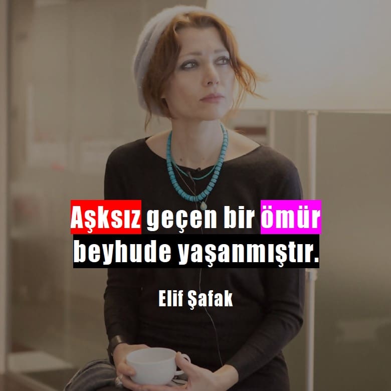 Elif Şafak sözleri, yazarın kitaplarında geçen aşk, ölüm, eşitlik ve yaşam üzerine ilham verici alıntılardan oluşur. Bu sözler düşündürücü olduğu kadar ders verici özelliğe de sahiptir.