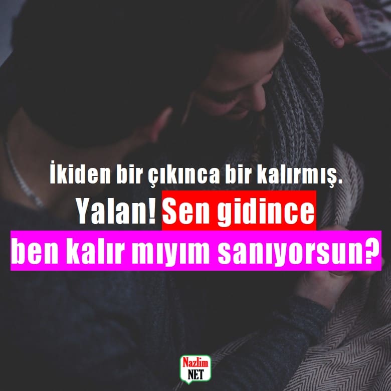 - “İkiden bir çıkınca bir kalırmış. Yalan! Sen gidince ben kalır mıyım sanıyorsun?”