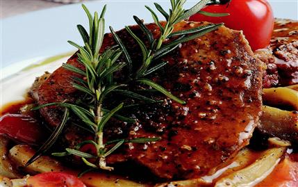 Etin her tarafı limon ile ovun ve yağ ile bir tencerede çevirerek kızartın. İki adet domatesin rendesini ilave edip, iki dakika kadar, arada bir tencereyi sallayarak pişirin, sirke katıp tekrar tencereyi sallayın. Üzerini aşacak kadar sıcak su, tuz ve biber koyup bir saat kadar orta hararette pişirin. Tencereden alıp soğutun. Et dilimledikten sonra, sosunda ısıtıp servis yapın.